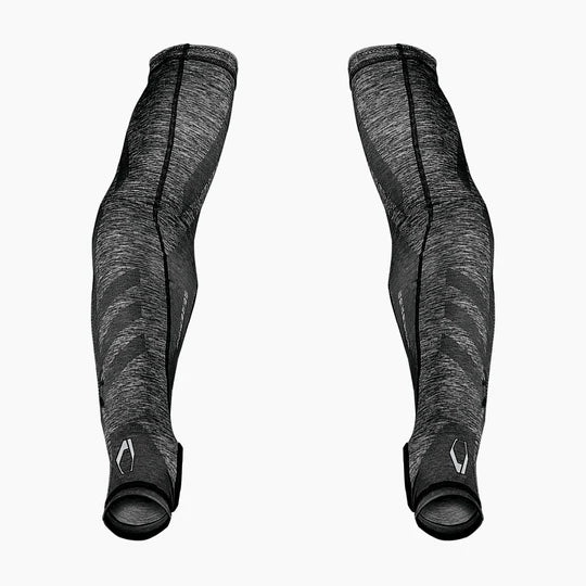 The compression arm sleeve is composed of a moisture wicking 85% polyester 15% spandex technical blend to improve breathability and range of motion. The slim two layer anatomical padding is designed to provide precise protection, compress muscles, fit snug and stay in place during intense activity.